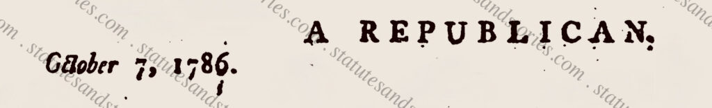 [40] “A Republican,” The Resolutions of Congress, of the 18th of April 1783: Recommending the States to invest Congress with the Power to Levy An impost for the Use of the States… (New York, 1787) (Evans 20783)(hereinafter the “Republican pamphlet”).