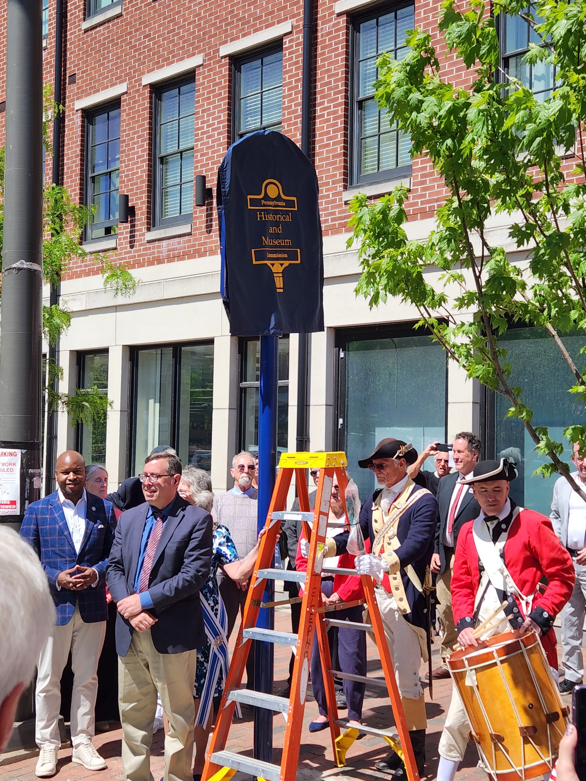 Statutes and Stories thanks the wonderful City of Philly, Mayor Parker, Michael Newmuis (2026 Director for the City), Richard Brookhiser, NSDAR (Beth Watkins, Suzanne Heske, Susan Gilette Meer), NSSAR (Michael Elston), Tim Schantz (Historical Society of Pennsylvania), Nicole Scholet (Alexander Hamilton Awareness Society), Christian Cassidy-Amstutz (America250PA), Eunho June (University of Pennsylvania), and of course the Philly Fife and Drum Company. Special thanks to the Pennsylvania Historical and Museum Commission (Ken Weinstein, Randell Spackman, Alli Davis, John Wood) which recognized that Miss Dalley’s boarding house was on par with the Declaration House. Additional names, and copies of speeches will be added in the next few days. The marker ceremony was held in conjunction with the annual meeting of the OAH which graciously welcomed us in the City of Brotherly Love.