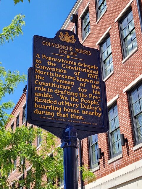 The marker for Miss Dalley’s boarding house where Gouverneur Morris, Alexander Hamilton and Elbridge Gerry boarded during the Constitutional Convention was unveiled this weekend.