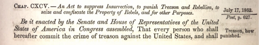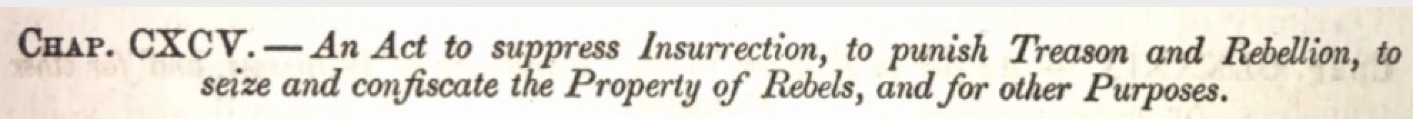 An Act to suppress Insurrection, to punish Treason and Rebellion, to seize and confiscate the Property of Rebels, and for other Purposes