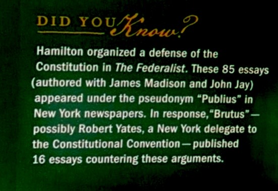 The National Constitution Center (NCC) installed its new permanent exhibit earlier this year. StatutesandStories.com is pleased to report that the new exhibit, America’s Founding, recognizes that Gouverneur Morris, Alexander Hamilton, and Elbridge Gerry boarded with Miss Dalley during the summer of 1787. Yet work remains to be done, as the NCC does not identify the Federal Farmer and incorrectly suggests that Robert Yates may have been Brutus.