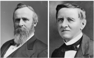 Democrat James Tilden seemingly won the popular vote. He was leading with 184 electoral votes (to Hayes’ 163 votes), but remained one vote shy of the required 185 vote threshold. The votes in four states were challenged (Louisiana, Florida, South Carolina, and Oregon), with electors for both Tilden and Hayes claiming victory and submitting competing slates.